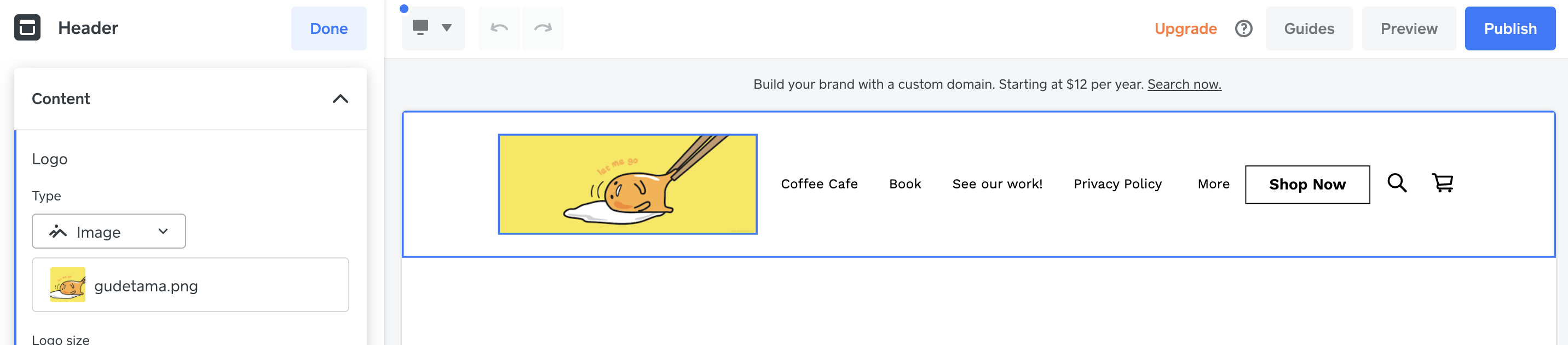 Once here, either click the header itself, or click the word Header in the left-hand sidebar.