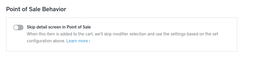 Using Square for Retail, it seems that items added to the cart from the Favorites menu are not respecting the "Skip detail screen in Point of Sale" setting on the items. When I add the item to a cart from the search, the detail screen is skipped.