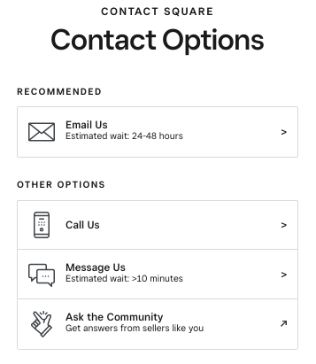 If you follow this link, it should take you to a page where you're able to use our contact methods without needing to sign into your Square Account.