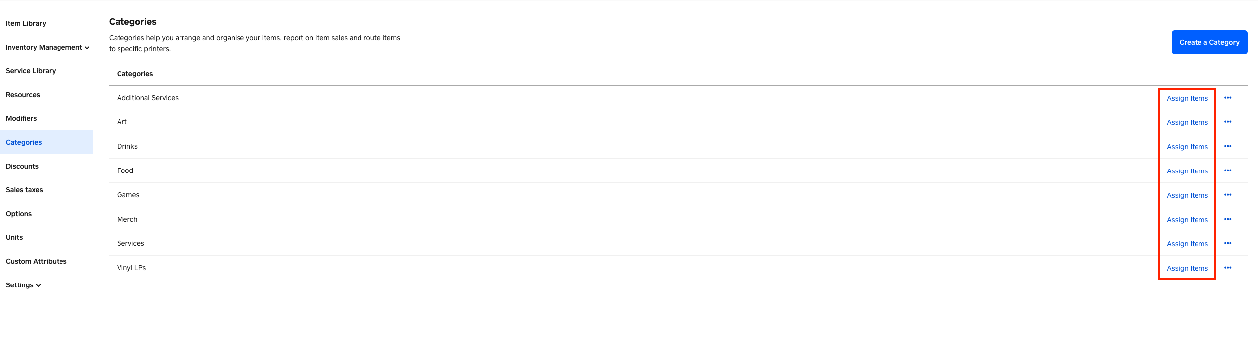 If you select "Assign Items" then you'll be able to go through a list of items (or search by item name) and tick which ones you want to add to a given category. It won't be as fast an an automated system, but it will be a lot quicker than manually editing the category of each item.