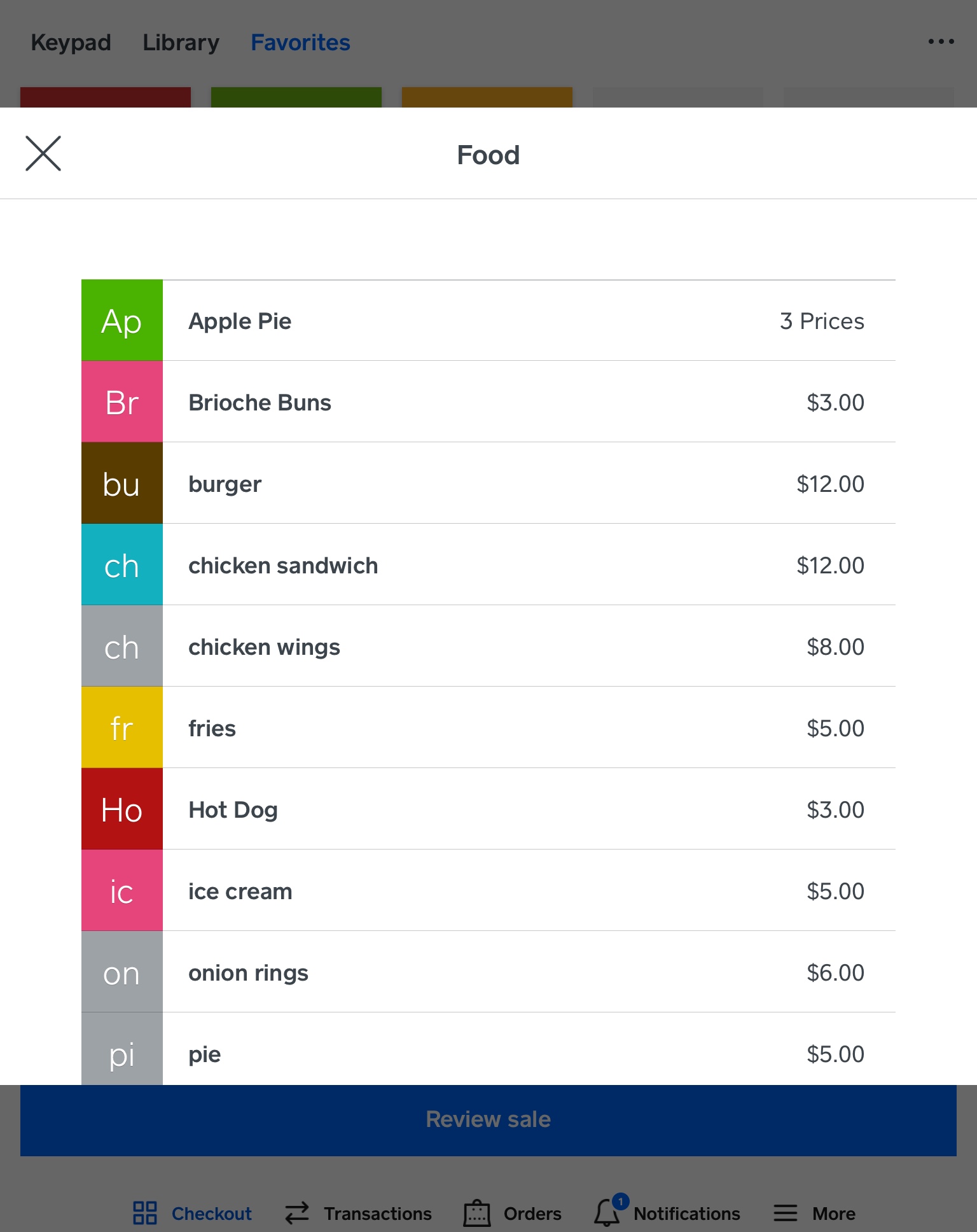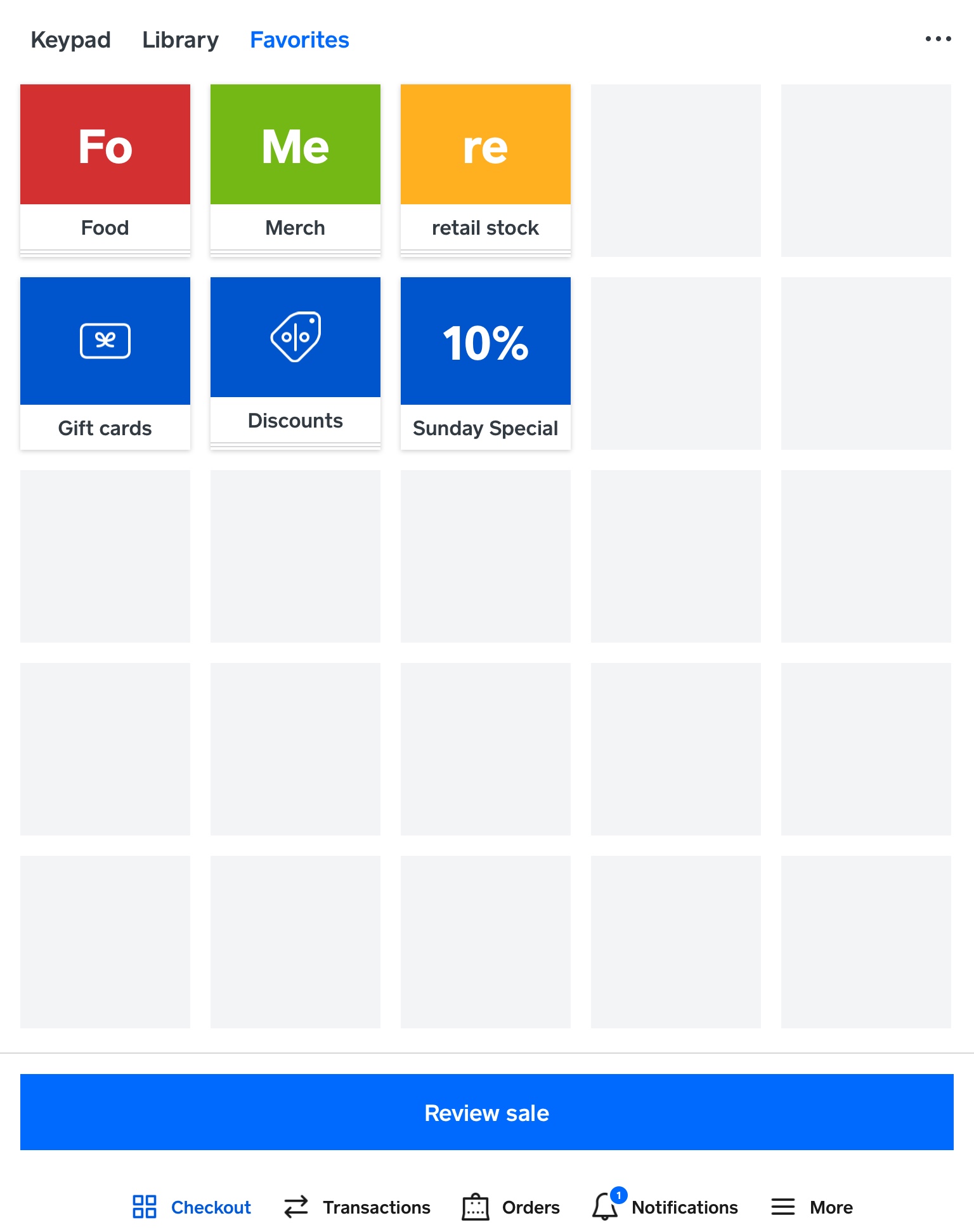 At this time, we don't have subcategories for the Square Point of Sale, but you can already use categories, and add items to them. If you're using a tablet, this can be set up as an item grid, and would look like this: