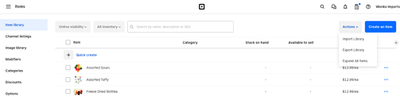 From within the Square Item Library, select the “Import Library” option from the “Actions” dropdown.