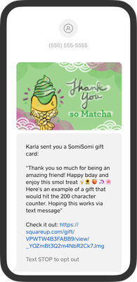 Text messages typically see higher open and click rates than email, so sending eGift Cards via text is a great way to help recipients keep track of their eGift Card.