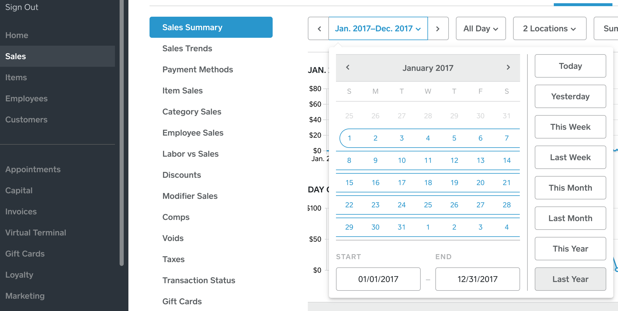 - Do you have multiple locations? The sales may have been under one of your other locations.