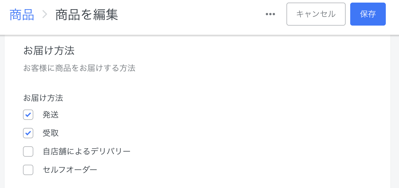 また、販売予定の商品のお届け方法の設定も、以下の手順で改めてご確認ください。