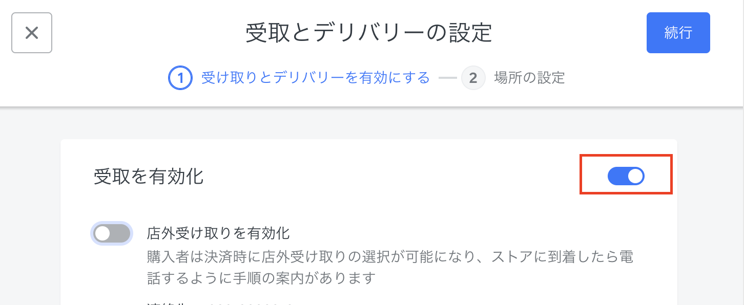 [設定] > [受取とデリバリー]で、追加した店舗の[店舗の編集]をクリックして、