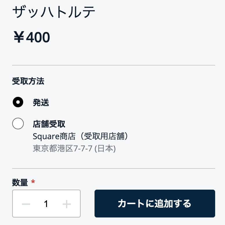 サイトの表示方法には、店舗は表示されていなくても問題ありません。Square オンラインストアで複数のWebサイトを運営している場合、そのWebサイト名がこちらに表示されます。
