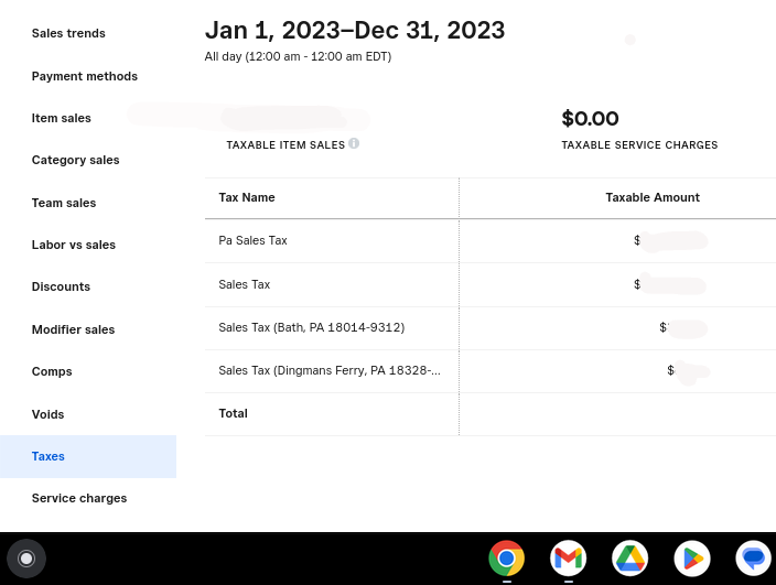$T for Tax 2...... etc. So then after the weekend you log in on Monday to your Square Dashboard > Reports > Taxes and this will list how much you collected for each area.