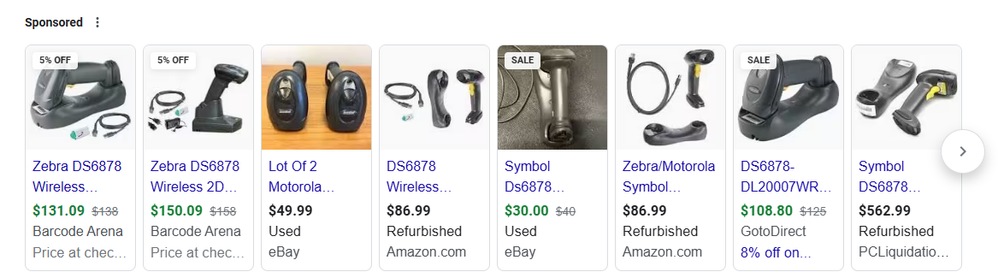 The Ds6878 is anywhere from $30 on ebay to $562 from PC Liquidations. Make sure you get Scanner, Cradle and the USB cord.
