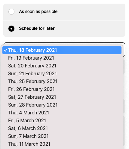 At the moment delivery date selection is done by selecting a date from a drop down box, rather than having to type it into a field.