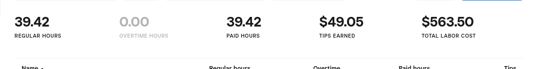 When I look at Labor & Tips, there is a totals line at the top, but that is, of course, for the past.  We are hoping there is a totals option for the Shift Schedule to see, at a glance, total hours scheduled for the week and total hours per employee.