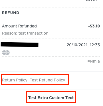 In our case, only the Return Policy works but the Custom Text does not work and does not appear on the receipt.