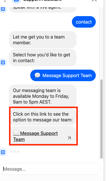 Our messaging team is available Monday to Friday, 9am to 5pm AEST.